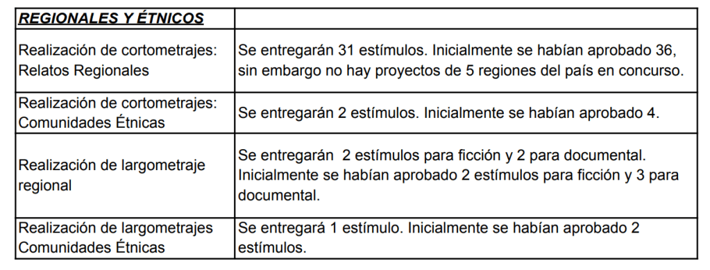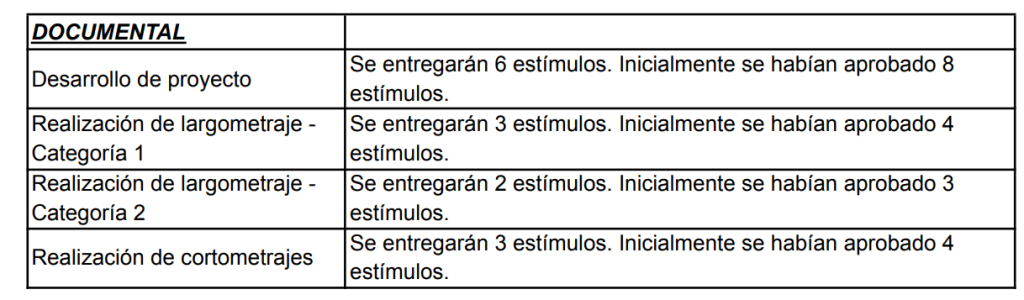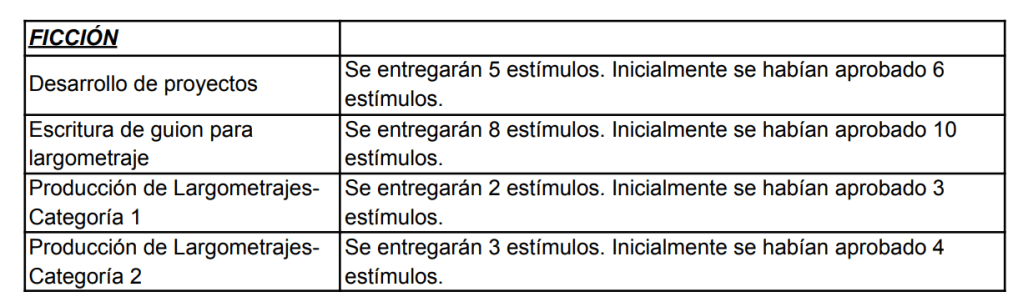 Pero la industria cinematográfica es cambiante y las cifras de asistencia a salas de son cada vez más preocupantes. Esta alarmante situación ha provocado que el recaudo de la Cuota para el Desarrollo Cinematográfico no alcance los montos proyectados de este año. Por tanto, el Consejo Nacional de las Artes y la Cultura en Cinematografía ha decidido reducir el presupuesto en las modalidades de Documental, Animación, Regionales y Étnicos, y Ficción.