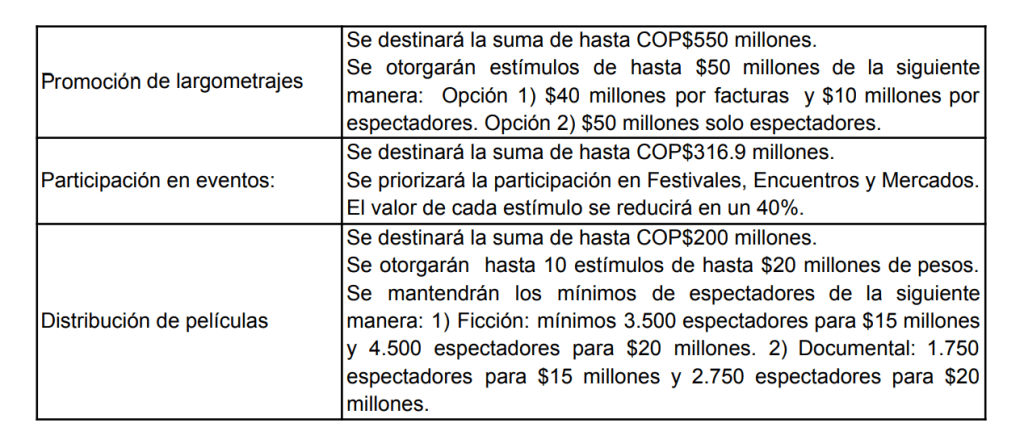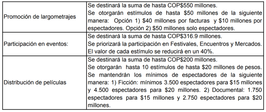 Los estímulos automáticos, que fomentan la promoción de largometrajes, participación en eventos (festivales, encuentros y mercados), además de distribución de películas; tienen una nueva suma de $2.314 millones.