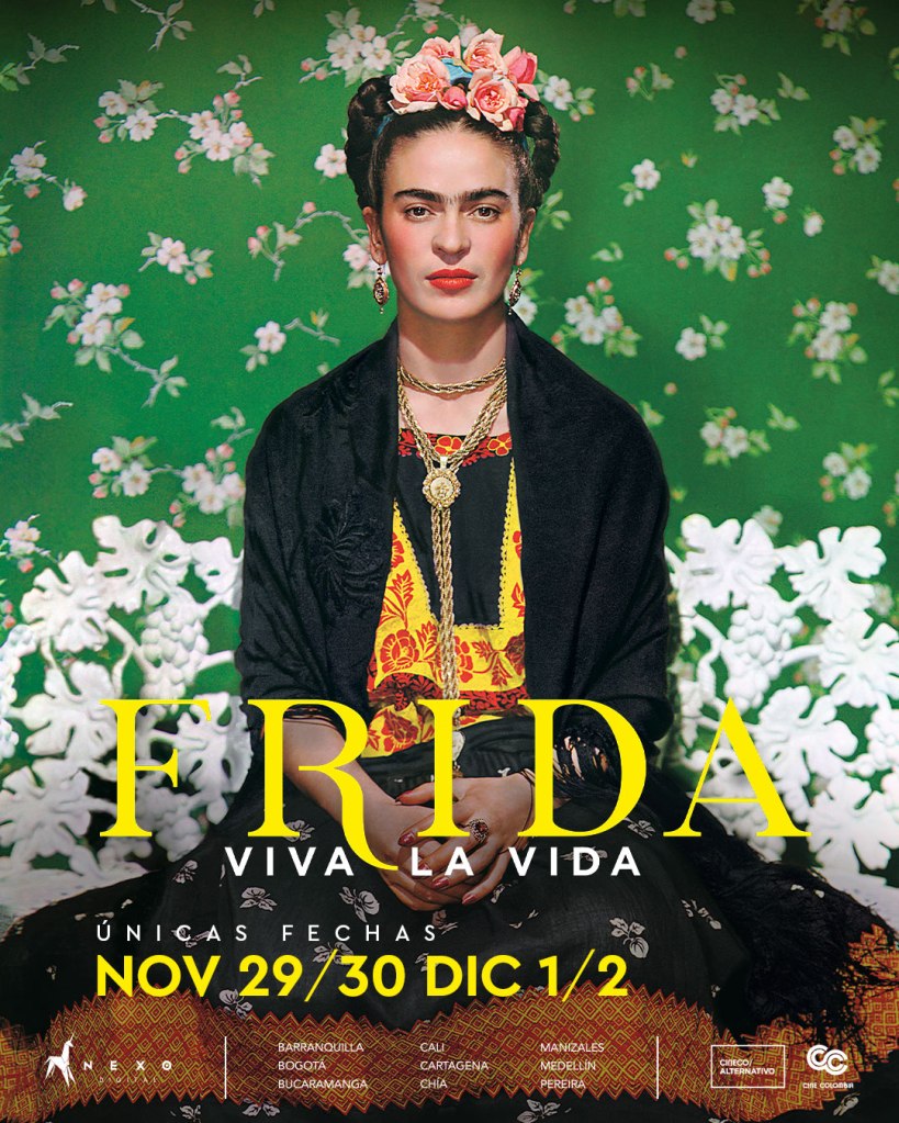 Kahlo, oriunda de Coyoacán, México; y conocida por algunas de sus pinturas más famosas como La columna rota, Dos Fridas y Autorretrato con collar de espinas y colibrí. Es, además, la protagonista del documental Frida: Viva la Vida, que se presenta en Cine Colombia este fin de semana 29 y 30 de noviembre, 1 y 2 de diciembre en nueve ciudades del país para seguir viviendo el arte en la gran pantalla.